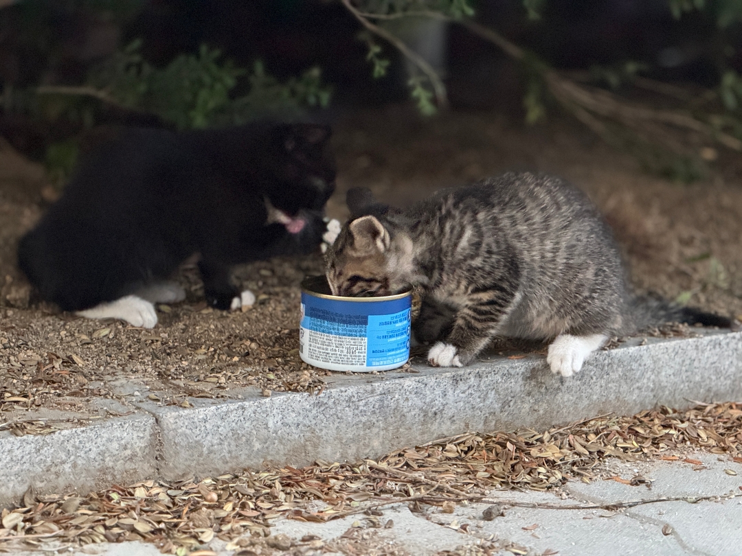 어미도 아기들도 배가 고파 보여서 습식사료를 줬더니 허겁지겁 먹고있다.