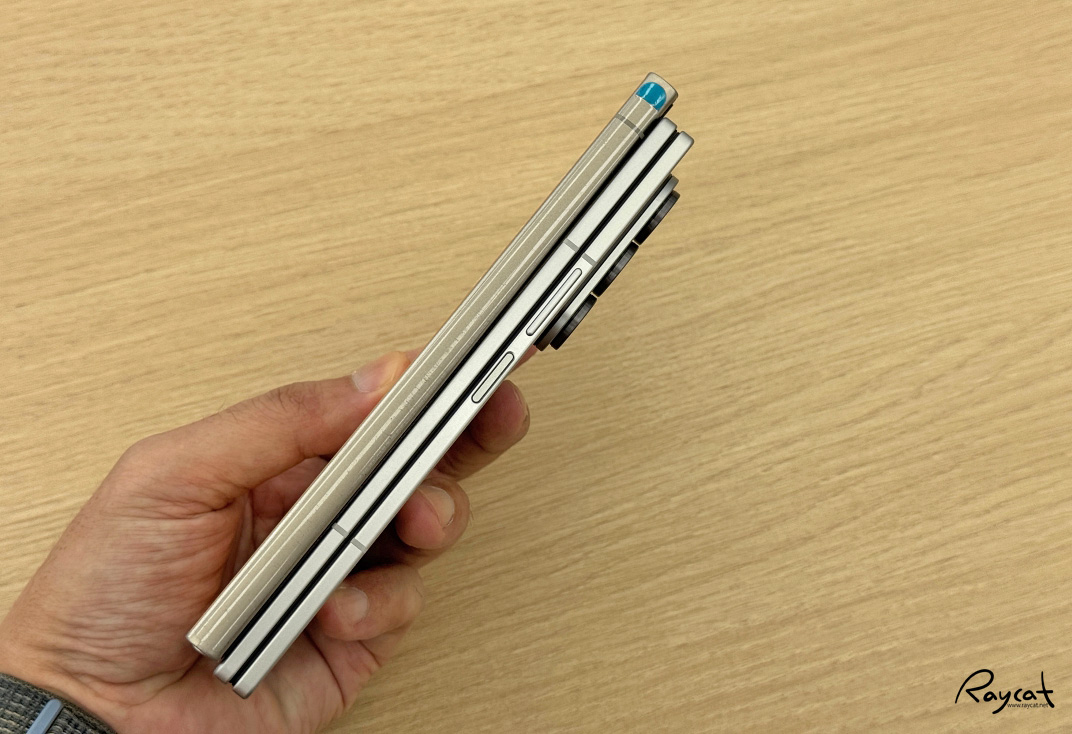 갤럭시 Z 폴드7을 펼쳐서 측면을 보면 정말 얇다고 느껴지는데 이렇게 슬림할 수 있구나 하는 생각이 듭니다.