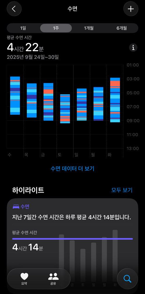 단 애플워치로 측정되는 수면 데이터는 100% 정확한 데이터는 아닙니다.