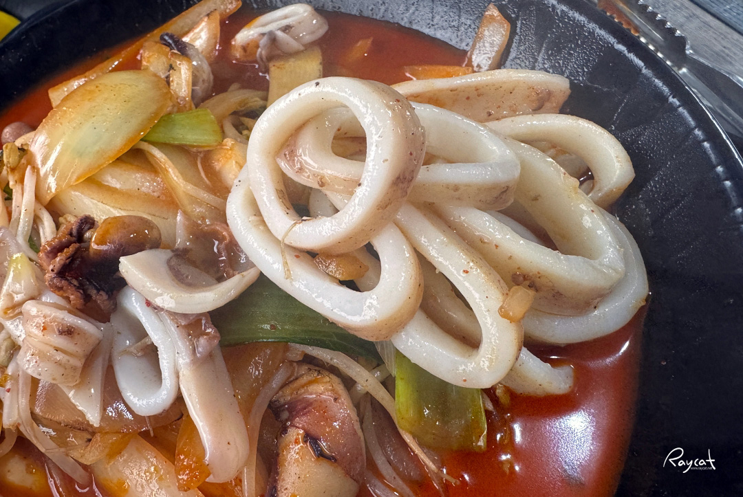 오징어 외에도 주꾸미, 새우에 숙주나물까지 다양한 해산물과 함께 얼큰한 국물이 매력이다.