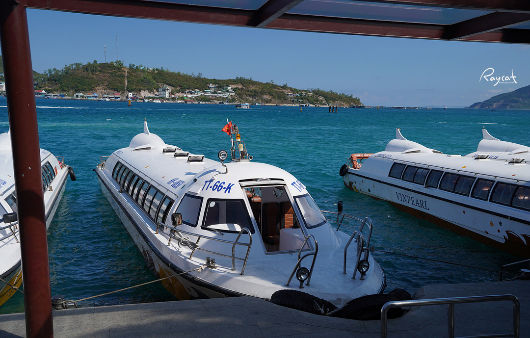 리조트에서 운영하는 보트가 계속 다니기 때문에 숙박 예약만 확인되면 보트는 무료이고 공항에서 바로 이곳으로 오는 경우도 많다. 빈펄리조트 투숙객들만 이용할 수 있는 선착장으로 입구로 들어가면 바로 안내를 해주고 음료를 제공한다.