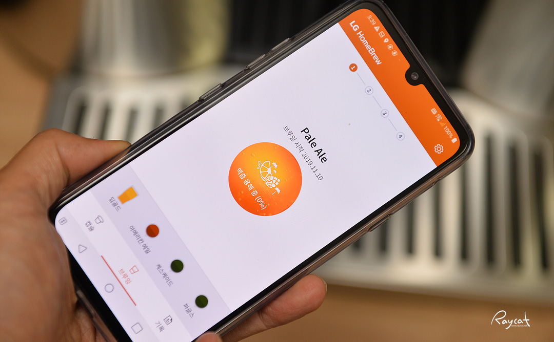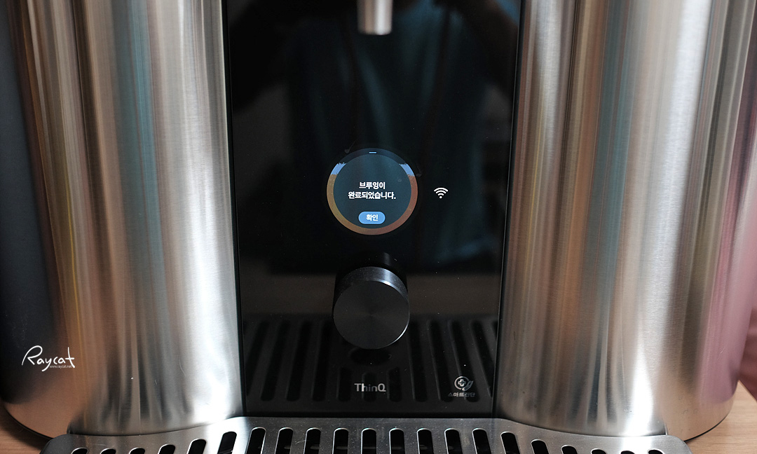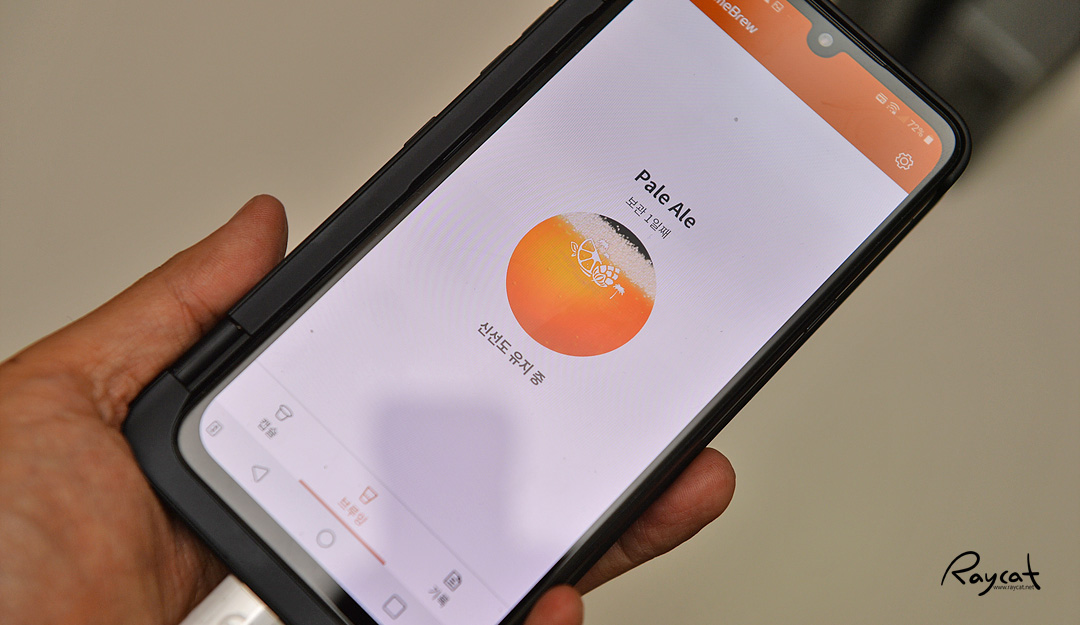 숙성화가 끝나고 홈브루에 브루잉이 끝났다는 메시지가 나옵니다. 어떻게 보면 꽤 긴 시간인데 그래도 기다리는 재미가 있다고 할까요?