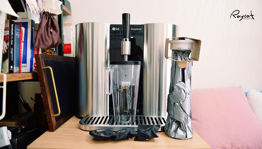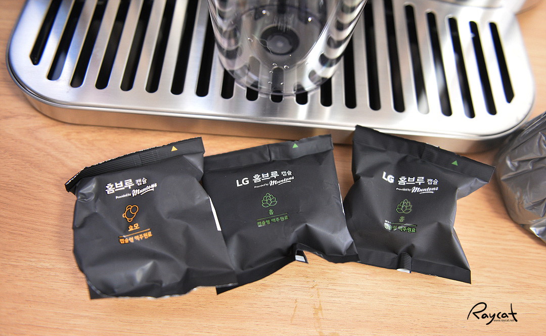 LG 홈브루의 설치 과정은 아주 간단합니다. 홈브루 위치를 잡고 전원 코드만 연결해 주면 바로 브루잉을 할 수 있는데 캡슐이 있어야 되기 때문에 홈브루 설치 전에 먹고 싶은 맥주 캡슐을 주문해 두면 됩니다.