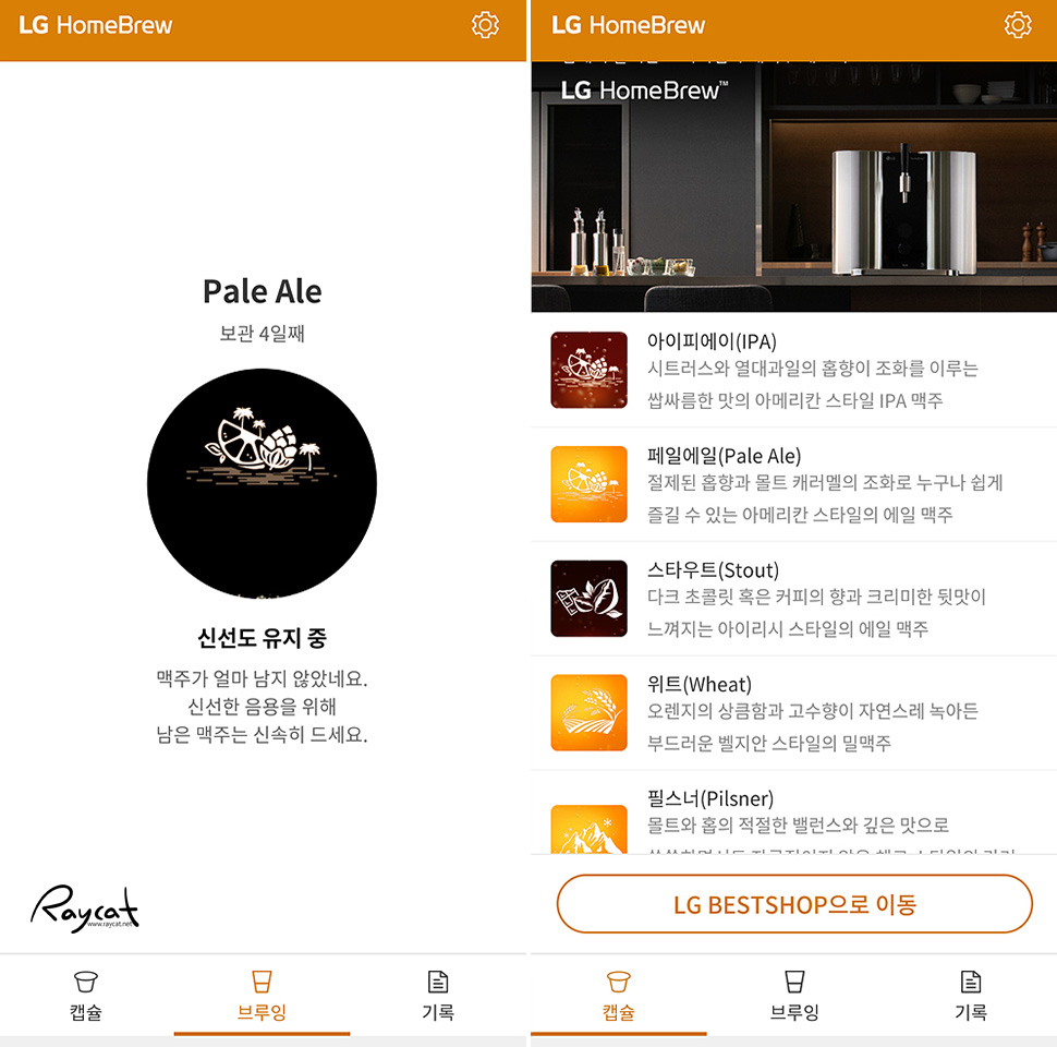 캡슐 주문부터 맥주가 브루잉 되는 과정을 모두 앱에서 확인할 수 있으니 앱은 미리 설치해두면 편합니다.