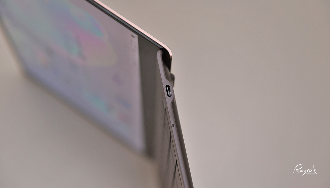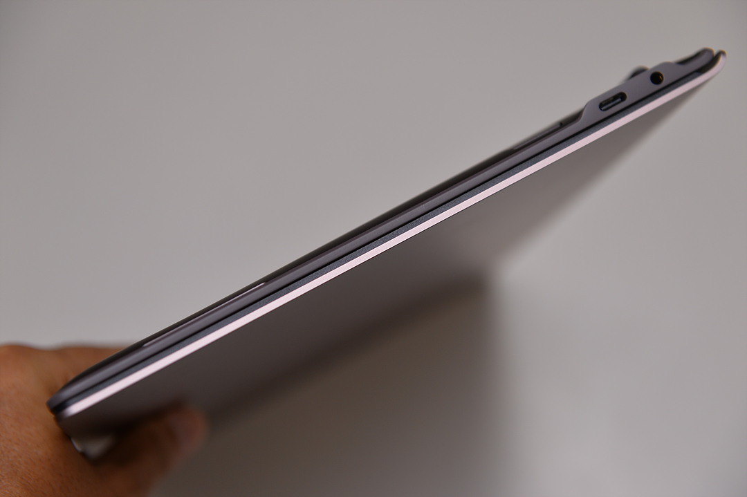 가볍고 슬림한 두께는 휴대성이 확실히 좋은편으로 측면에 USB-C 포트와 3.5mm 이어폰 잭만 있습니다.