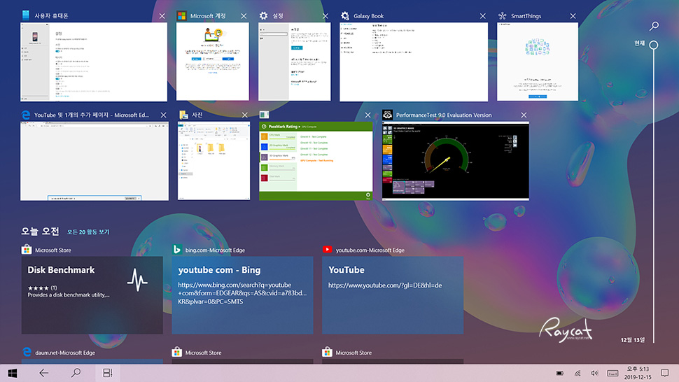 갤럭시북 S의 타임라인 화면은 지나간 시간동안의 작업 기록을 보여줍니다.