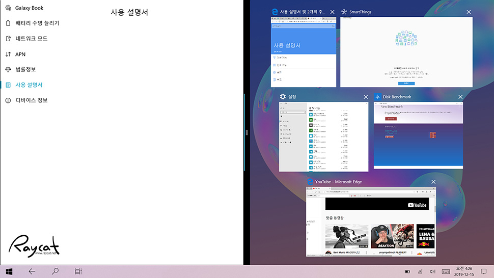 태블릿모드로 사용할 경우 화면을 분할해서 이렇게 사용할 수 있으며 태블릿 모드는 아이패드와 같은 태블릿 느낌을 줍니다.