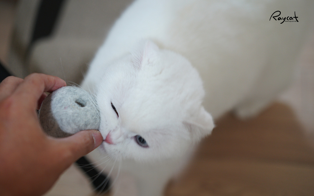 캣닢볼의 감촉은 꽤 부드럽고 좋은데 고양이도 꽤 마음에 들어합니다. 압축한 양모라 털이 날리거나 흩어지지 않습니다.