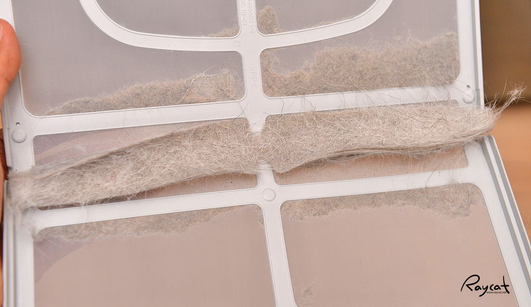 세탁기에 탈수도 추가해서 돌려서 어느 정도 털이 제거됐다고 생각했는데 필터를 빼 보니 역시 담요는 고양이 털이 엄청나게 붙습니다. 건조기 필터에도 고양이 털과 먼지가 이만큼 나오네요.