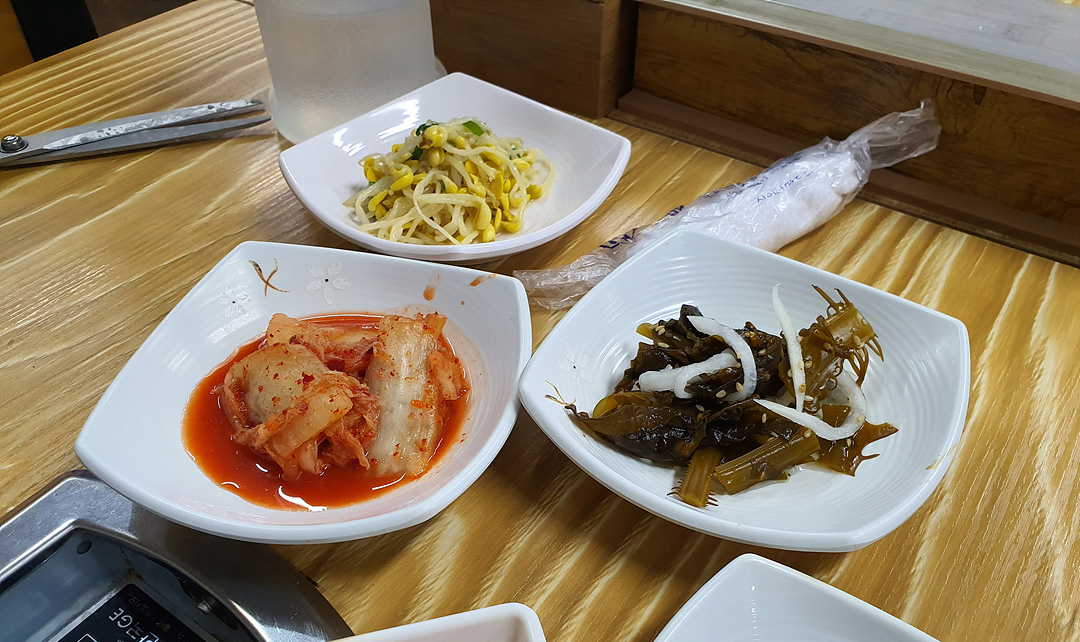 양념장과 함께 간단한 콩나물, 김치 등 간단한 반찬거리가 나오는데 부족하면 더 가져가서 먹으면 됩니다. 특이하게 테이블에 화투를 붙여서 번호 표시를 했더군요. 전 6번 테이블!!!