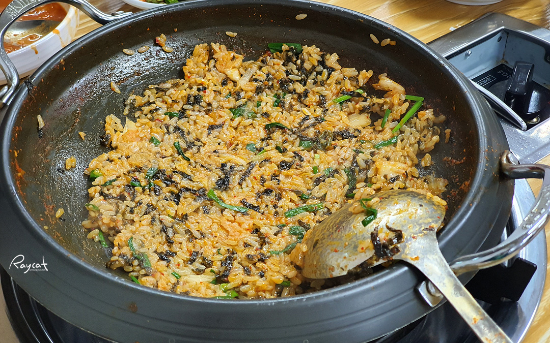 이왕 왔으니 다 한 번씩 먹어보자는 생각에 볶음밥을 주문했습니다. 볶음밥은 부추에 김, 김치 참기름이 들어가고 곱창전골을 다 먹고 국물과 야채 조금 남았을 때 전골 솥에 밥을 같이 볶아줍니다.