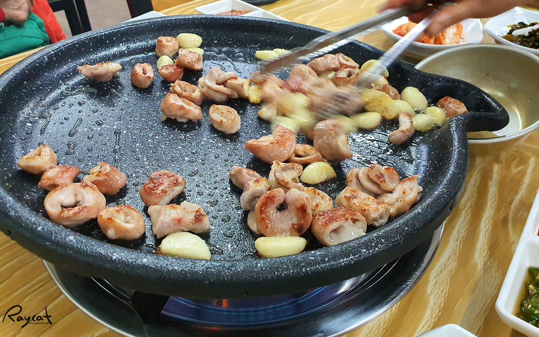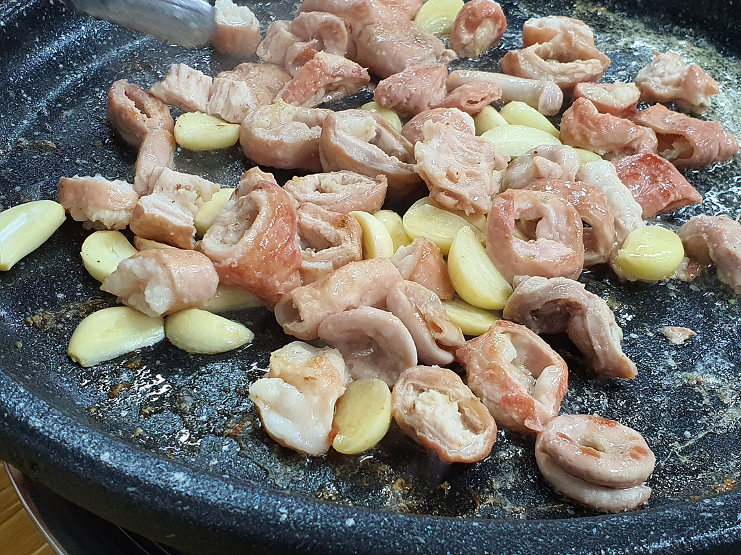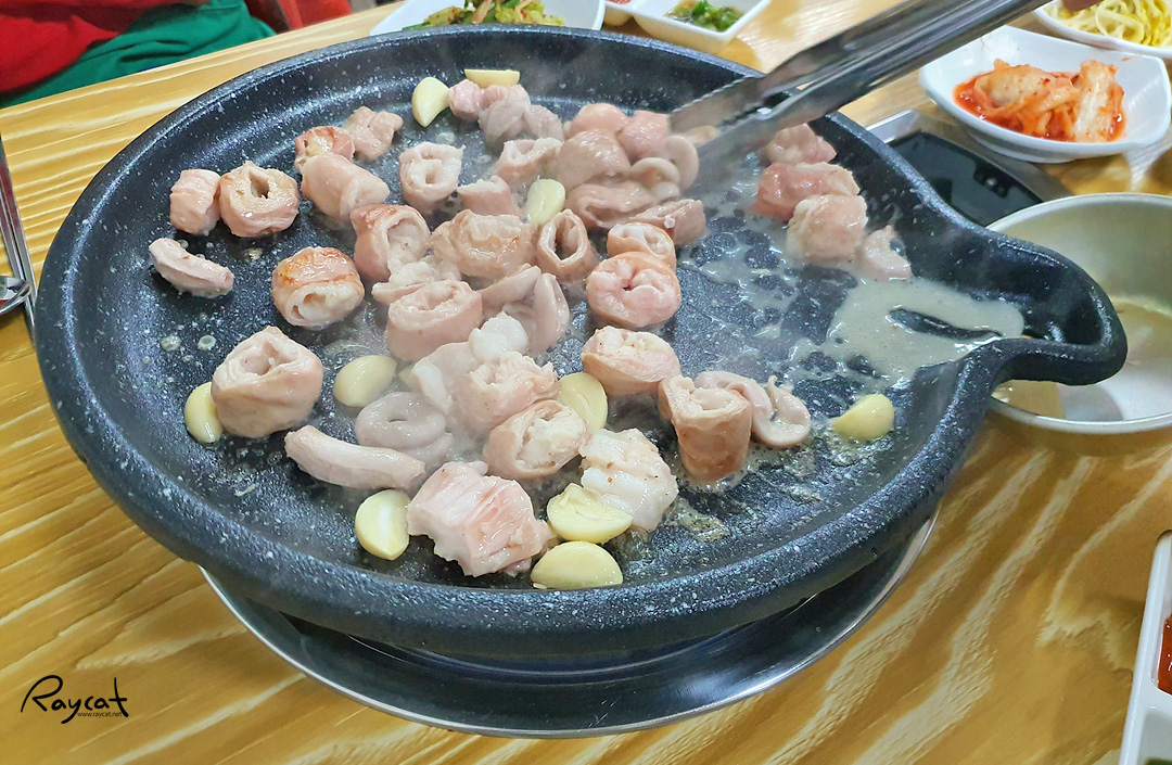 돼지곱창은 잡내도 없고 주인아주머니가 직접 구워줘서 노릇노릇 구워지면 그냥 먹기만 하면 됩니다. 직접 안 구워도 되니 편하더라고요.