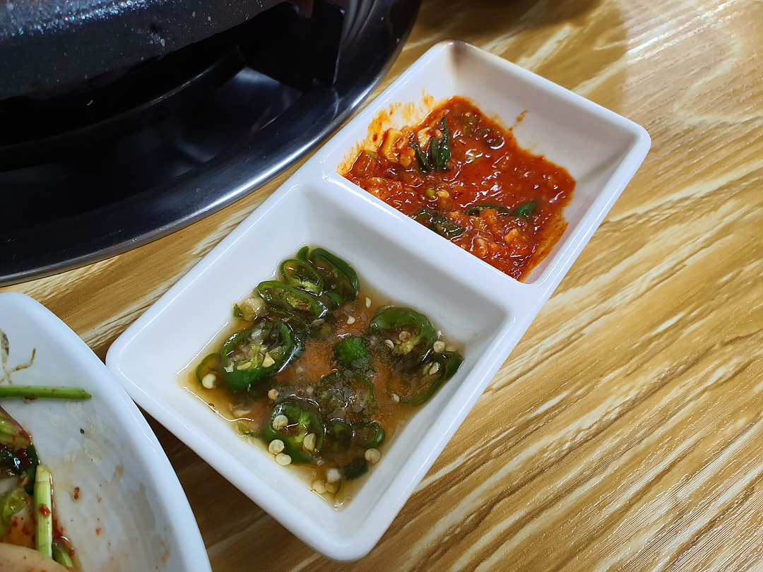 곱창과 함께 나오는 양념장이 꽤 맛있더군요. 곱창이 고소해서 전 냄새가 안 나면 그냥 곱창만 먹기도 하는데 그냥 곱창만 먹으면 심심하신 분은 양념장에 찍어 드시면 됩니다.
