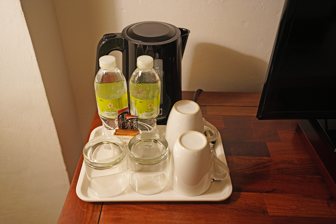 물은 매일 기본 제공되며 냉장고 안 물이나 음료수는 따로 청구서가 나옵니다. 커피 포트가 있어서 라면이나 커피, 차를 먹기에 편합니다.