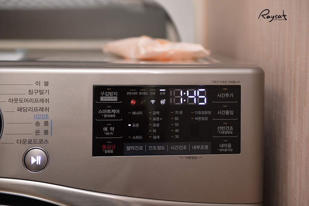 지난번 담요를 건조할 때도 그렇고 이불 건조가 가장 오랜 시간이 소요됩니다. 2시간 55분으로 표시가 되더군요.