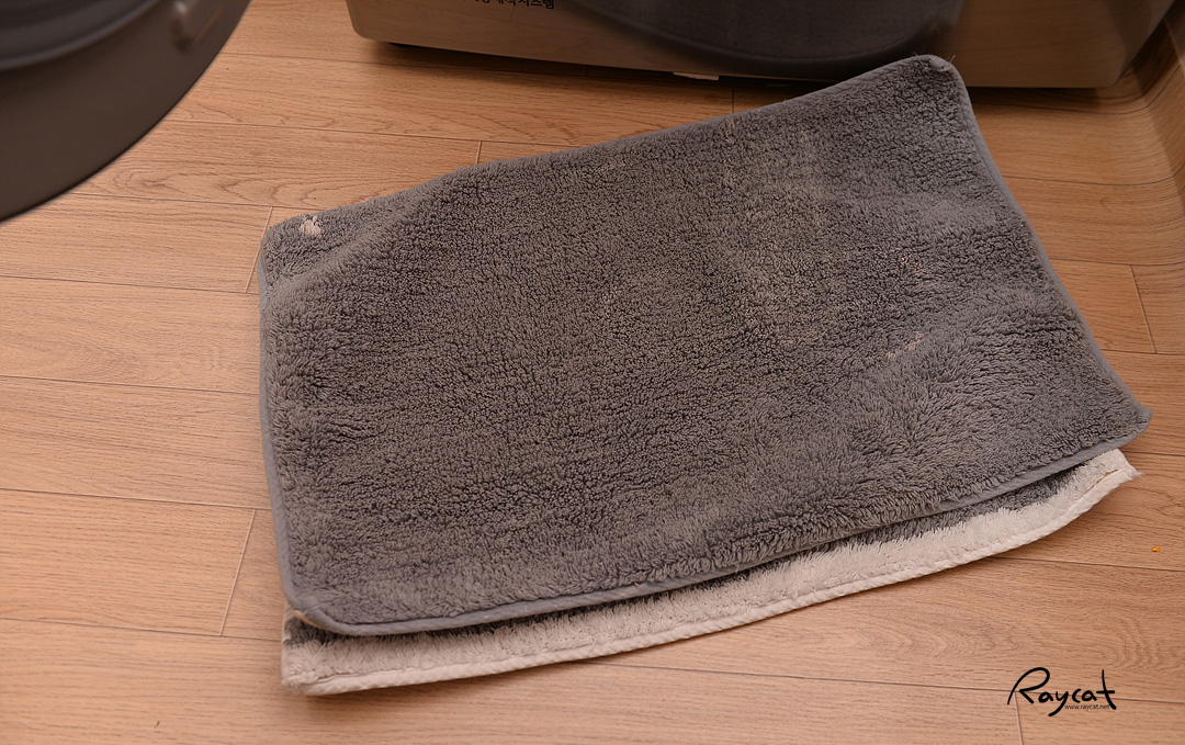그리고 이건 베란다 나가는 문과 욕실 앞에 깔아 둔 발 매트인데 이것도 뽀송뽀송 잘 말랐네요.
