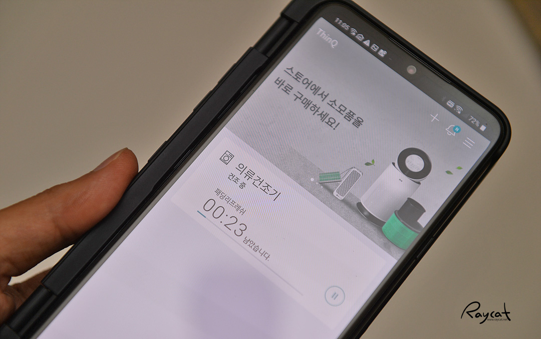 건조기를 가동하고 앱으로 알림이 올 때까지 기다립니다.
