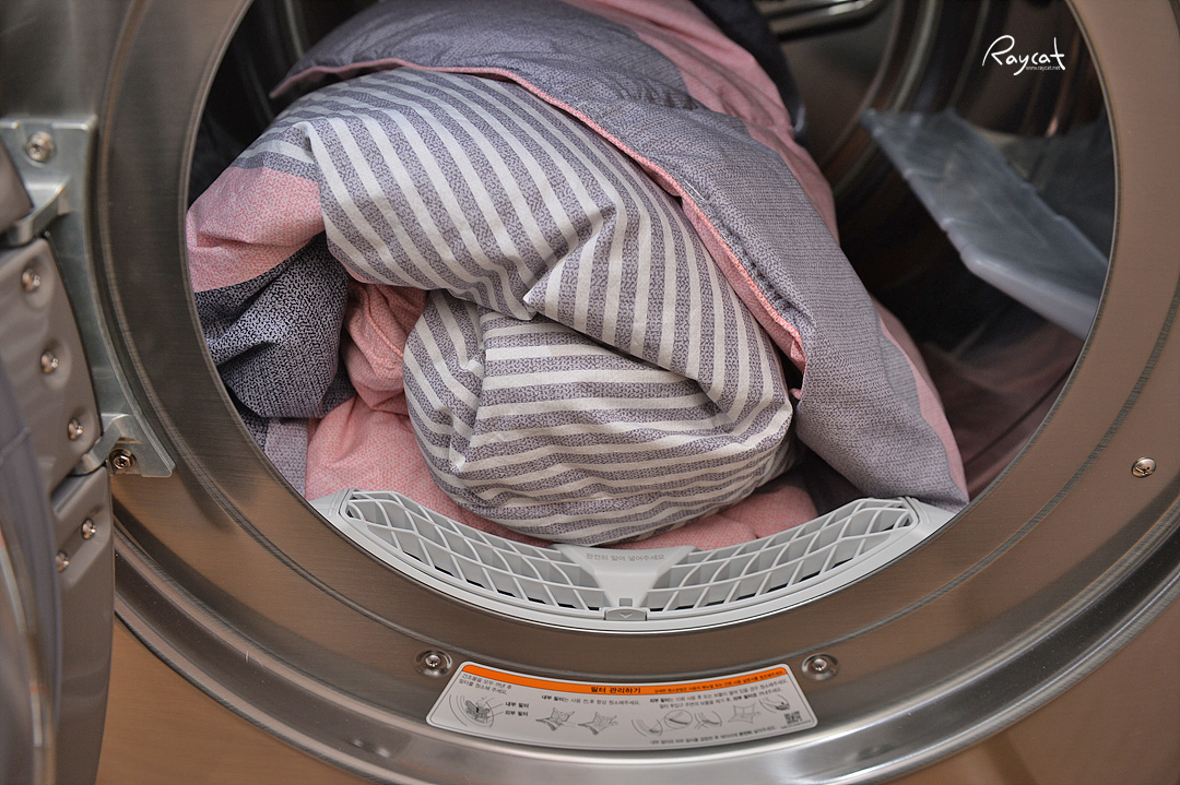 그리고 이건 제가 집에서 세탁을 안 하는 물건 중 하나인데 바로 거위 털 이불입니다. 집에서 세탁을 해도 말리는데 워낙 시간도 오래 걸리고 거위 털 이불은 세탁소로 보내는 이불인데 이제 건조기가 있어서 집에서 세탁을 했습니다.