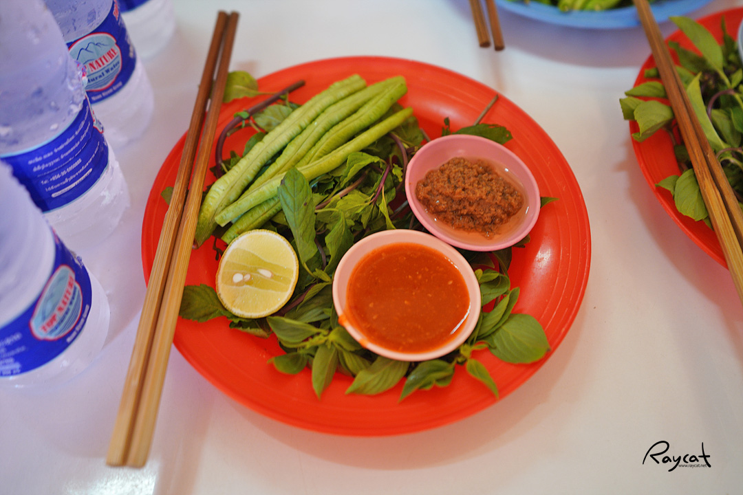 국수를 주문하고 테이블에 앉으면 바로 숙주나물을 가져다 주는데 국수에 넣어서 먹으면 되는데 고수, 레몬그라스등등이다. 그리고 함께 양념장이 나오는데 한국의 양념장과 다르다.
