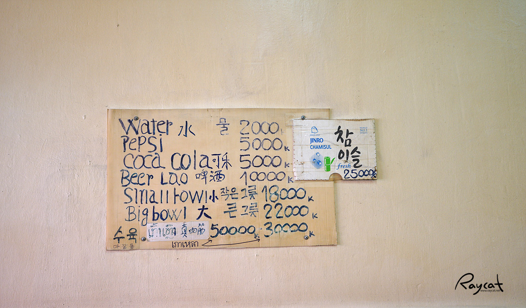 메뉴판에 보면 익숙한 한글도 보이는데 가격은 국수가 1500~2000원 사이다. 라오스 낍은 나누기 1.7을 하면 한국돈과 비슷해지는데 계산하기가 조금 복잡하다고 할까?