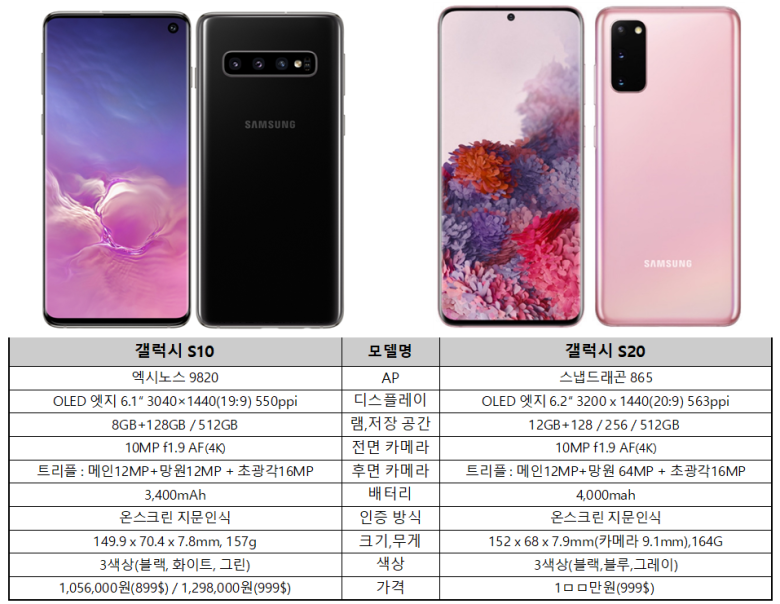 물론 배터리 용량도 갤럭시 S20 플러스가 더 큰 4500mAh를 탑재 했을거라 전망하고 있습니다.