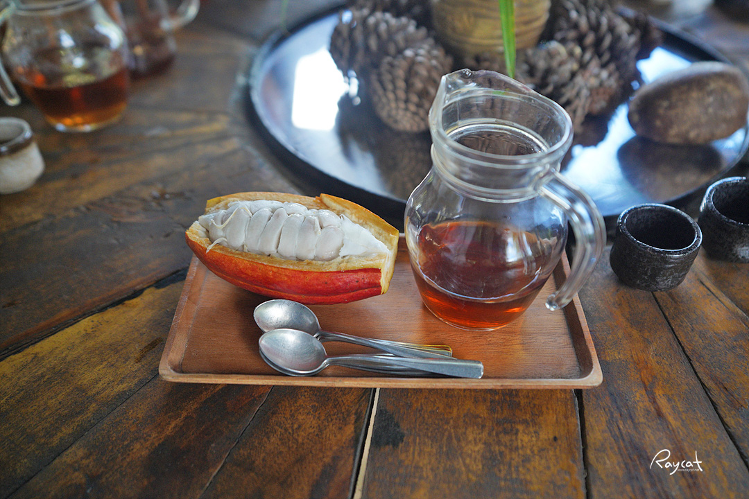커피를 주문하며 이곳에서 만든 차도 맛보고 싶어서 차도 하나 주문 했는데 카카오 열매가 함께 나왔다.