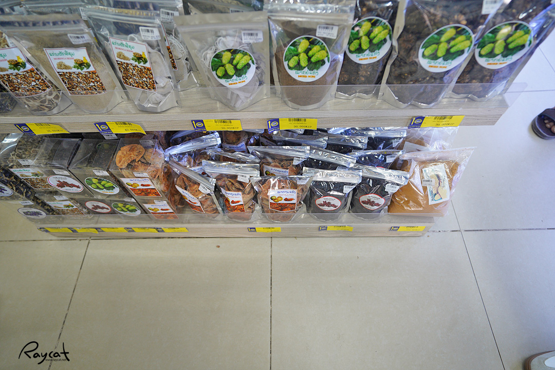 동남아에 오면 선물용으로 많이 사가는 말린 과일들도 종류별로 많이 있는데 중국산 태국산이 섞여 있으니 이왕이면 made in laos를 사도록 하자. 말린 과일의 경우 홈아이디얼 앞 과일 도매상으로 가면 오히려 더 저렴한 가격에 구매할 수 있다.