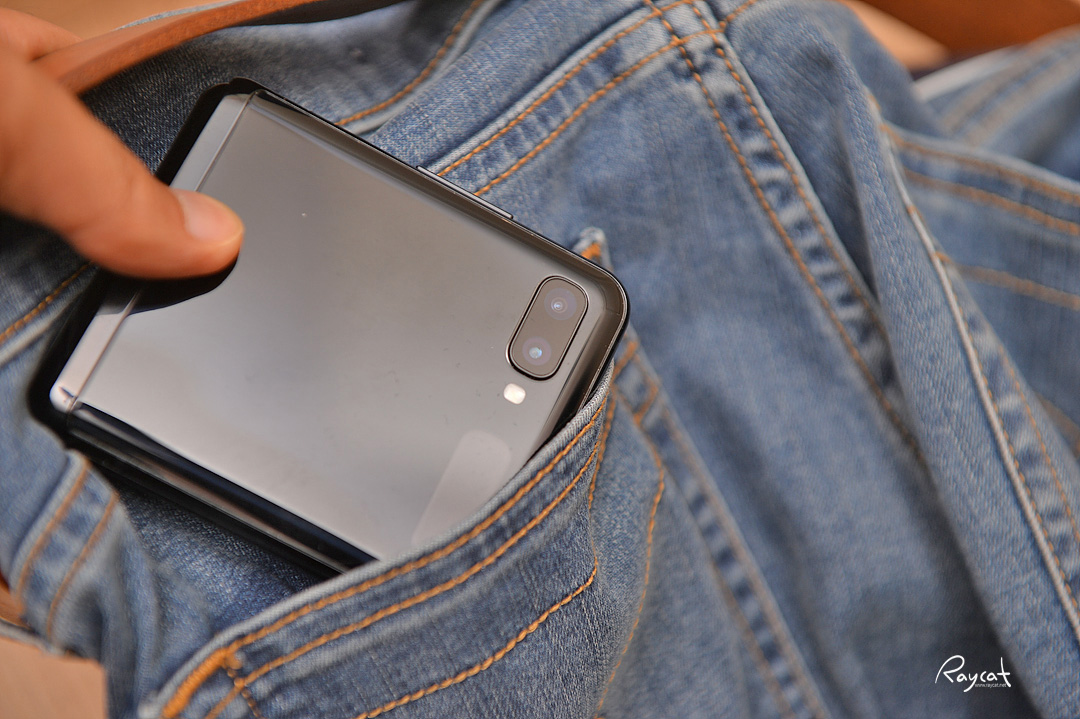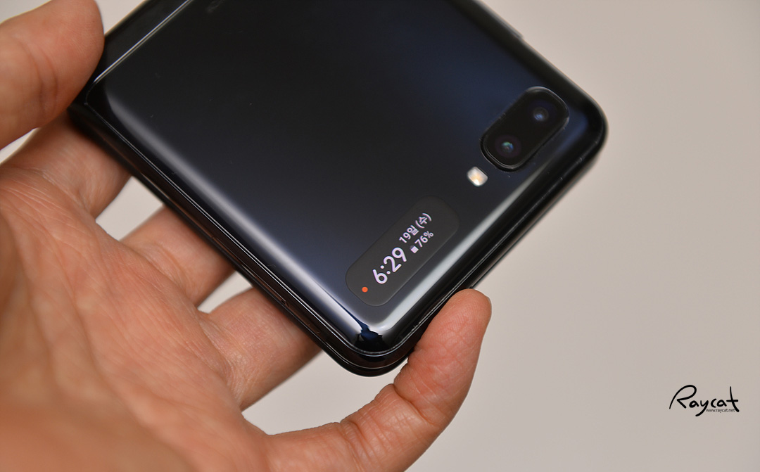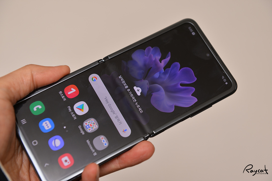 접었을때는 주머니 속에 넣어도 부담이 되지 않을 정도로 작은 크기에 가벼운 무게는 갤럭시 Z 플립의 가장 큰 매력이기도 합니다.