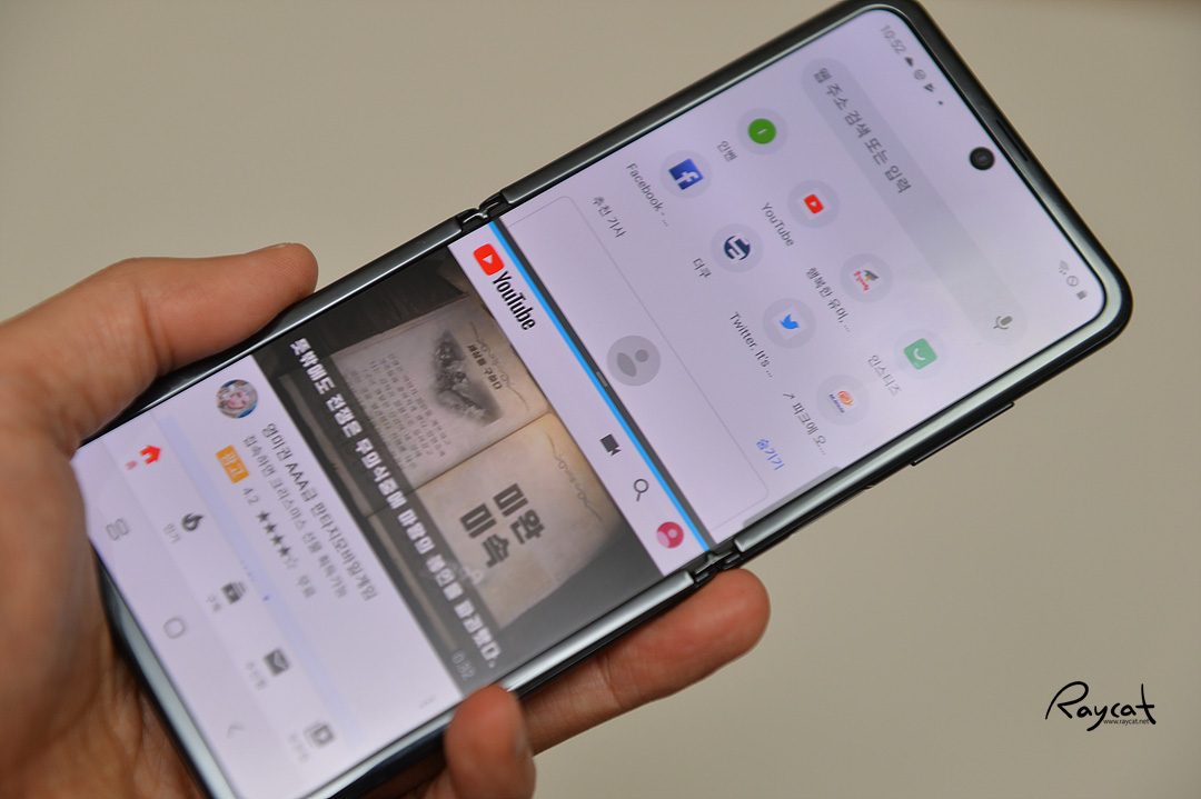 일반 스마트폰의 멀티 윈도우와 같은 기능이지만 차이는 화면을 원하는 각도로 접어서 볼 수 있다는 점인데 의외로 이게 꽤 편한 경우가 있습니다.