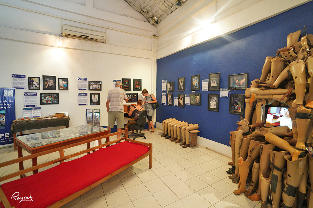 이곳에 있는 의족은 미국이 떨어뜨린 불발탄에 희생된 피해자들의 의수를 보여주는 것이다.