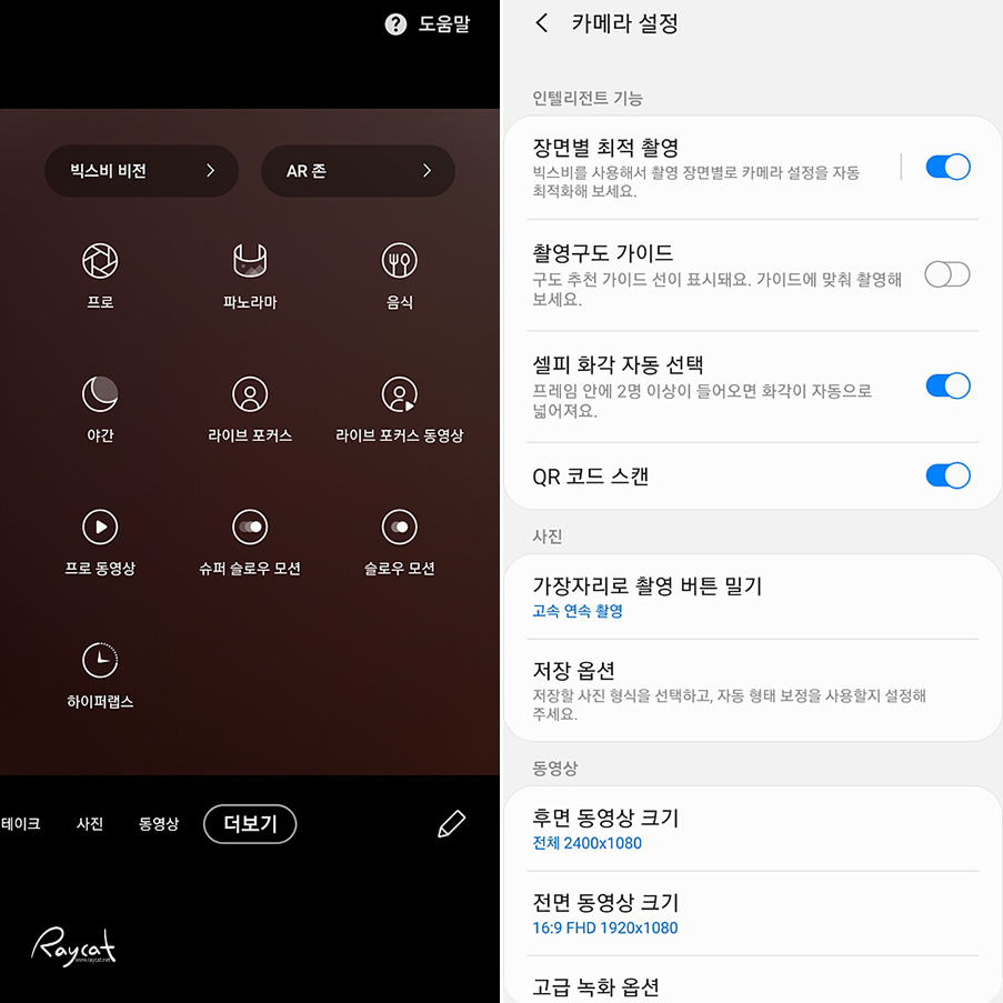 갤럭시 s20 울트라는 줌 기능과 싱글테이크란 기능을 제외하면 다른 기능이나 메뉴는 이전 갤럭시 S10과 거의 동일합니다.