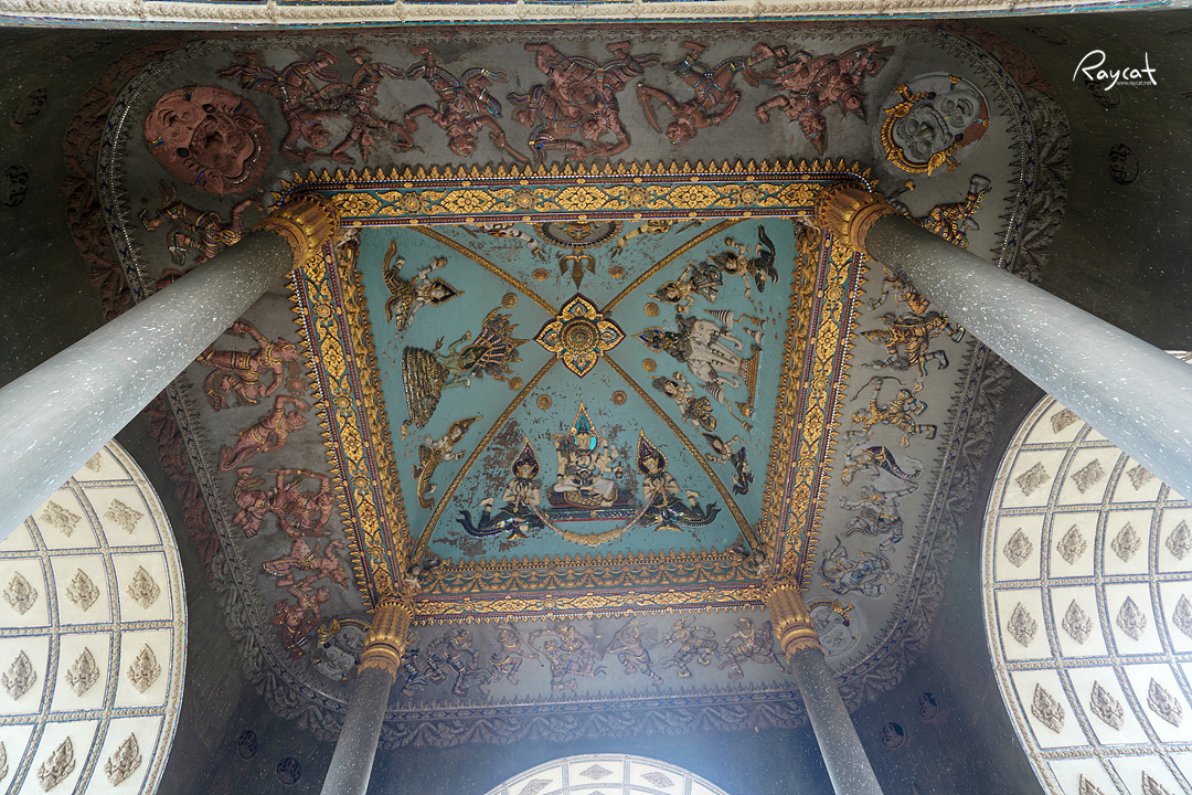 안쪽의 천정에는 이곳이 불교국가임을 느낄 수 있는 불교와 관련된 그림과 조각들이 있다.