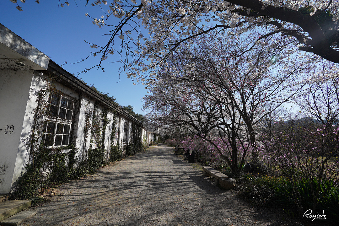 주차장에 차를 세우고 매표소를 지나 들어가면 벚꽃이 활짝 핀 학교의 전경을 볼 수 있다. 큰 벚꽃 나무가 학교를 가리고 있는데 학교는 이제 작가들의 전시장으로 사용되고 있으며 1년 내내 다양한 전시를 하고 있다.