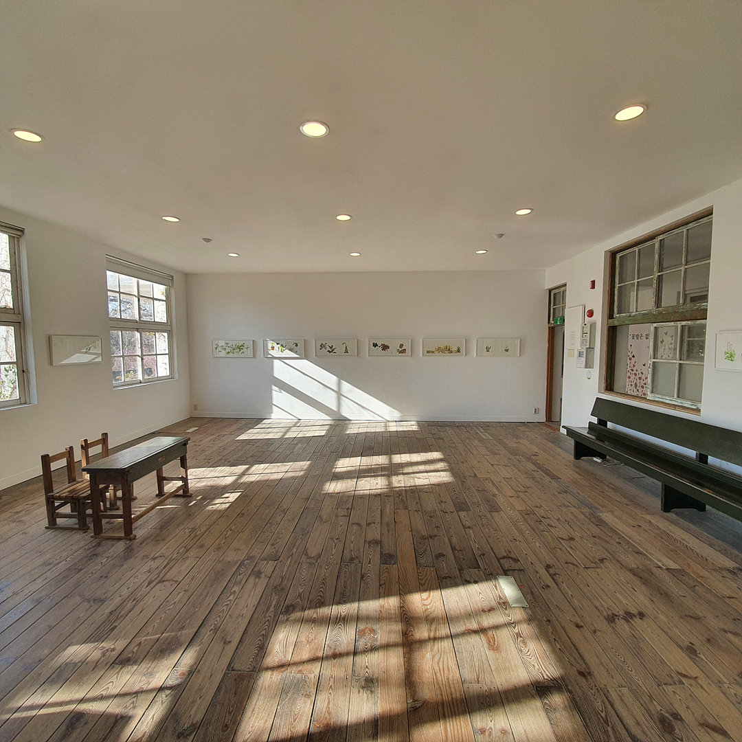 운동장을 지나 전시장으로 가는 길 학교가 원래 교실 3개와 교무실이 하나 있었던 초등학교라 건물은 작은편이다.