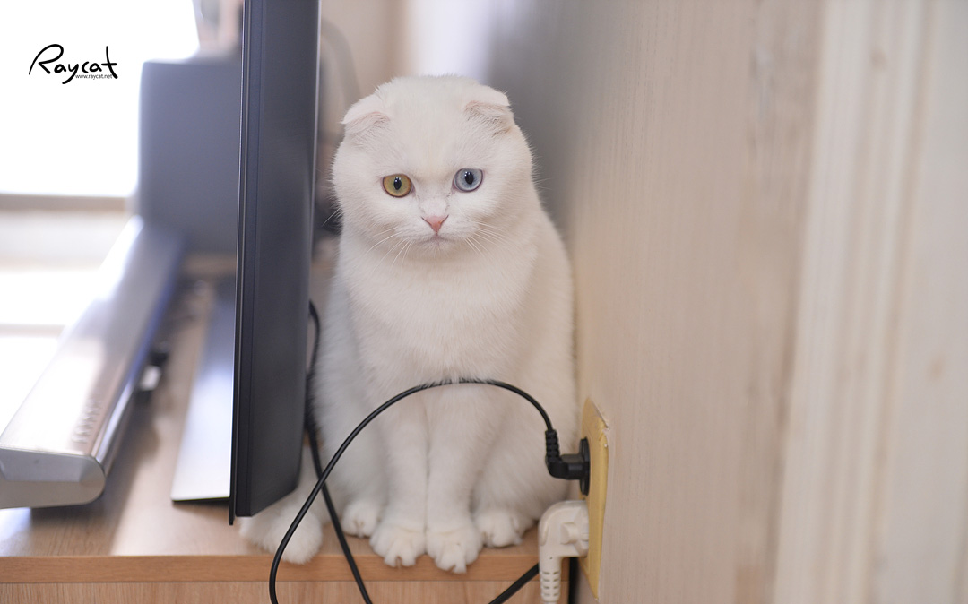 TV 뒤에서 왔다갔다 하며 고개를 내밀고 사람을 감시하는 고양이 입니다.