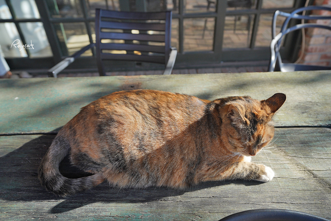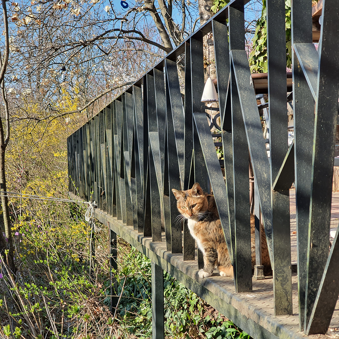 사람도 좋아하고 사회성도 좋은 고양이라 밖으로 돌아다니며 산책도 하고 이곳이 좀 외진 곳이라 다니는 사람도 없어서 고양이가 날씨가 따뜻한 날이면 카페의 테라스 부터 뒤산까지 돌아다닌다.