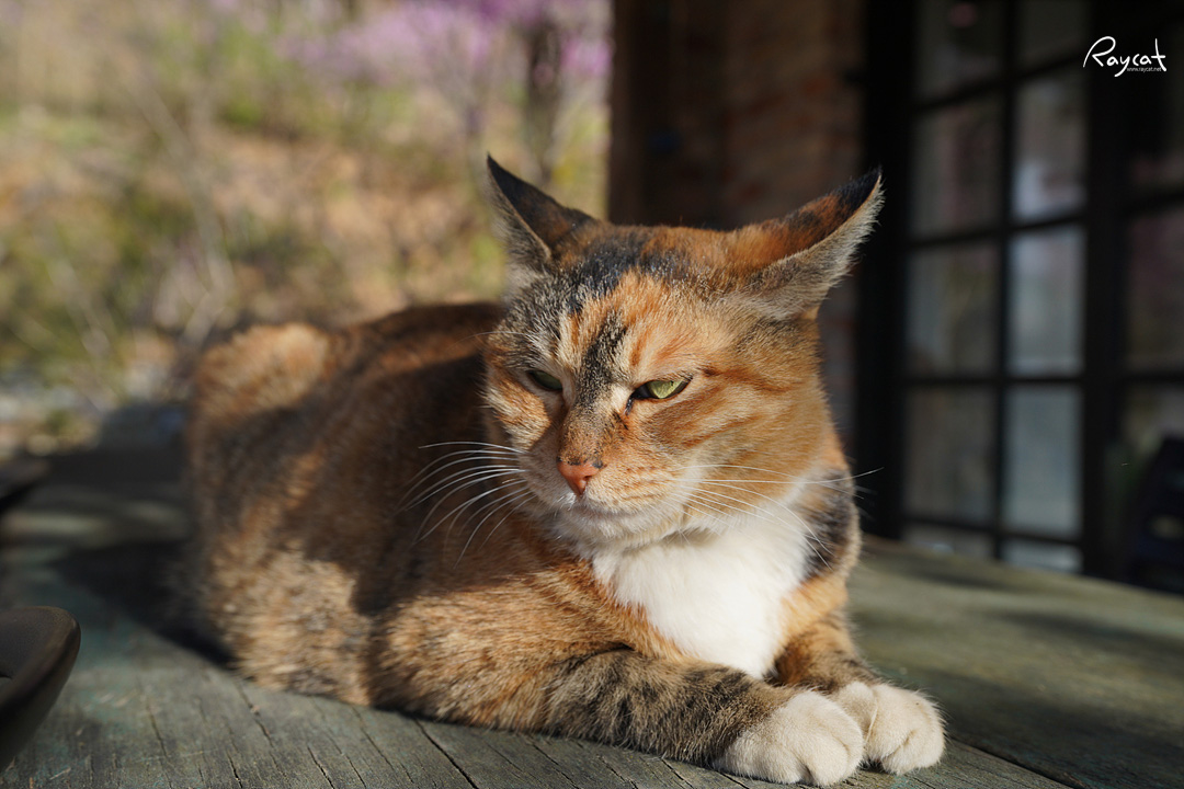 사람이 잘 돌봐줘서 그런지 몰라도 살도 많이 찌고 상태도 무척 좋아보인다. 날씨가 아마 더 따뜻해지면 산으로 돌아다니며 벌레를 잡으며 돌아 다니는데 아직 바람이 차가워서 그런지 카페 근처만 배회하고 있다.
