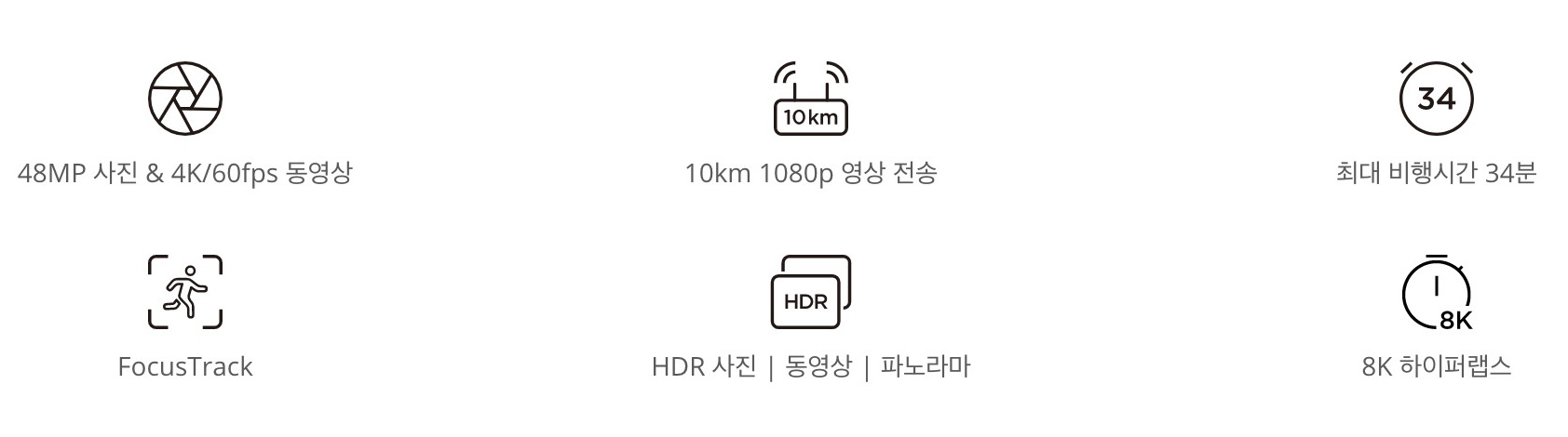 이미지 센서의 경우 화소수가 매빅2 보다 더 큰데 4800만 고화소의 이미지 센서를 탑재 했습니다. 영상 전송 거리도 10km로 상당히 늘어났습니다. 여기에 배터리 타임이 최대 34분으로 비행 타임도 늘어났습니다.