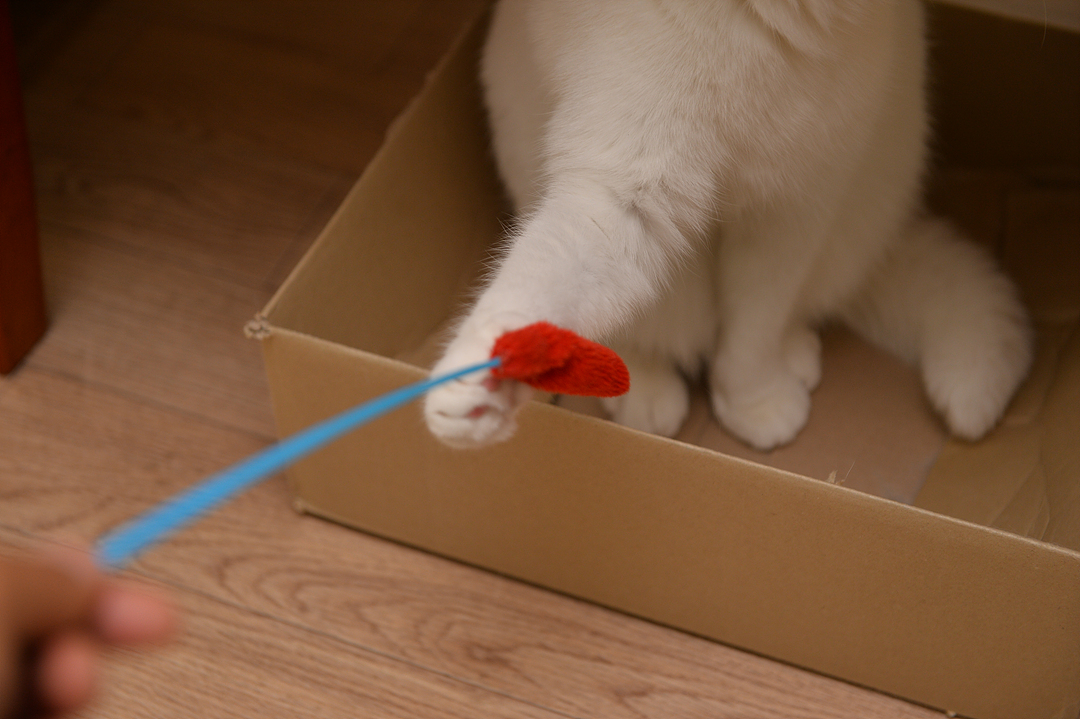 고양이 낚시대로 고양이 낚아보기