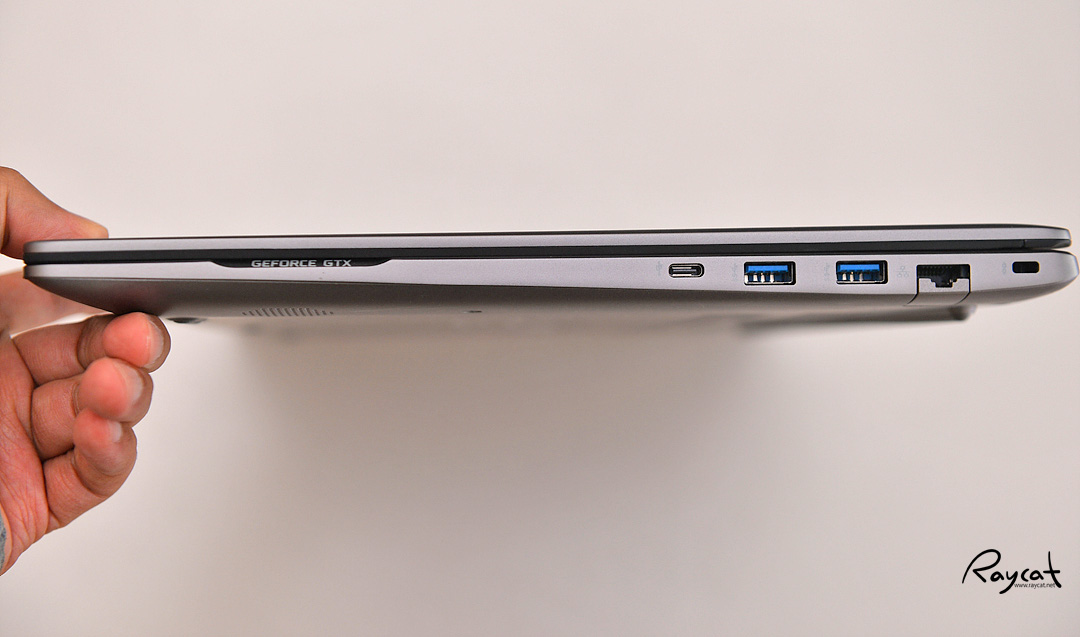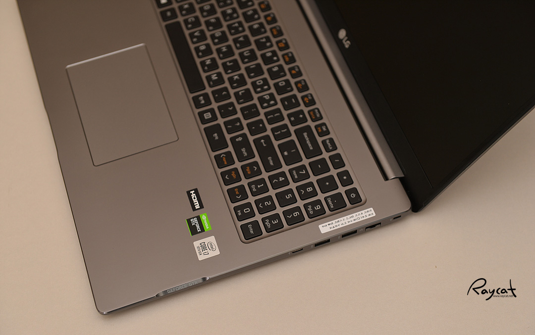 측면에 보면 마치 자신의 성격을 알려주는 느낌이라고 할까요? 그래픽 카드를 따로 탑재했다는 것을 이야기하듯 GEFORCE GTX란 글자가 보입니다. 전체 디자인은 그램을 닮았지만 그램과 좀 다른 부분이기도 합니다.