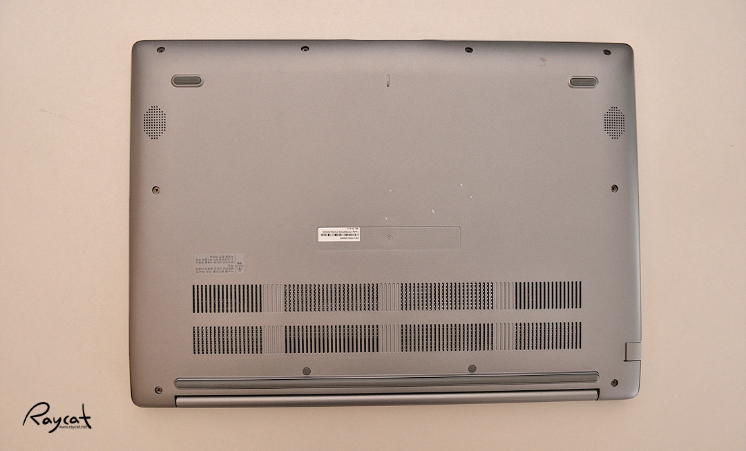 고성능의 노트북이라 냉각 시스템에 꽤 신경을 썼다는 것을 볼 수 있는데 하판에 통풍을 위한 방열판과 팬이 안쪽에 있음을 볼 수 있습니다. 내부에서 발생한 열은 아래쪽 그리고 힌지의 뒤쪽으로 빠져나오게 되어 있으며 하판의 네 모서리에 미끄럼 방지용 고무가 그리고 스테레오 스피커가 양쪽에 배열되어 있습니다.