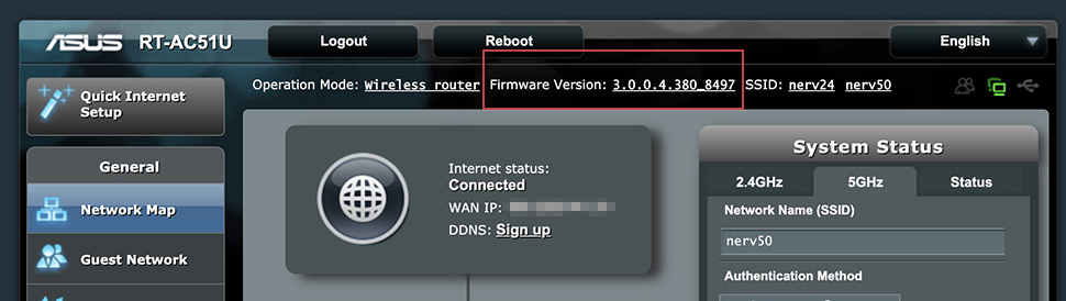 위 캡처 화면에서 붉은 네모로 영어로 firmware version 이라고 되어 있고 숫자가 있는데 현재 공유기의 펌웨어 버전을 의미하는 숫자로 그 숫자를 누르면 공유기 펌웨어 업데이트 화면으로 넘어갑니다.