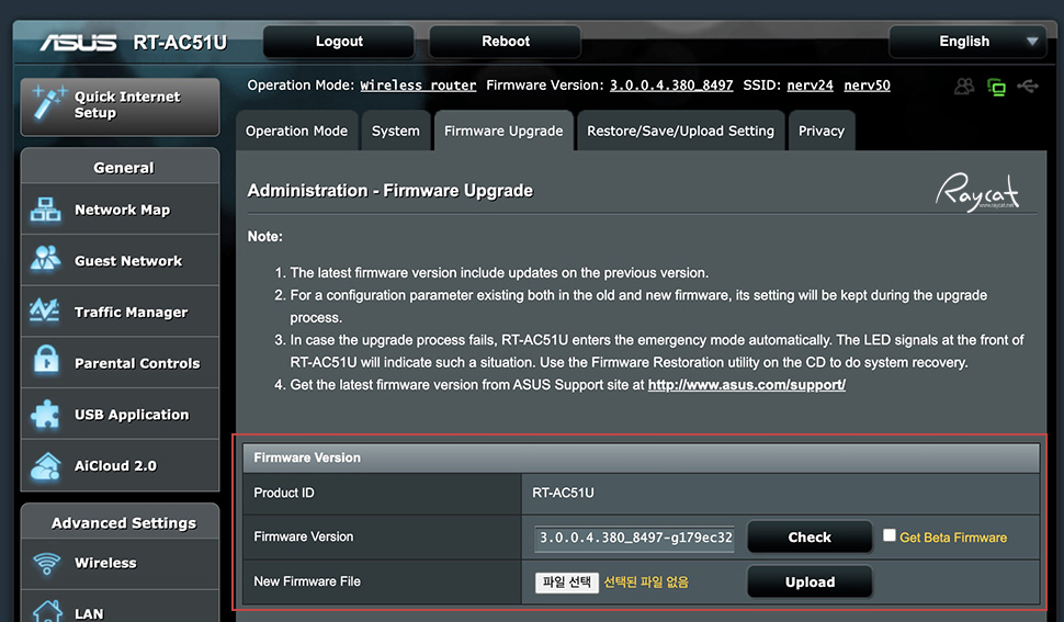 공유기 펌웨어는 자동으로 업그레이드 되면 좋을텐데 이게 자동으로 되는 공유기가 아니라서 수동으로 업데이트 해줘야 합니다.