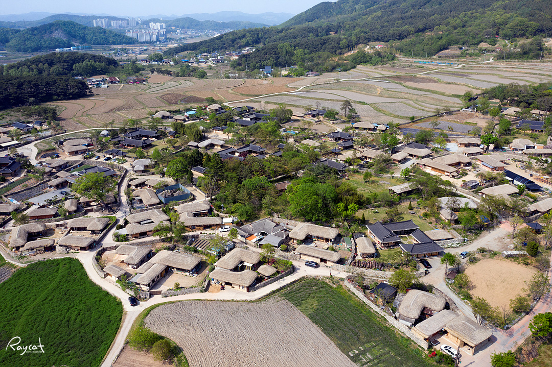 내부로 차 진입은 불가능하며 주차장에 세워두고 가면 되는데 마을을 한 바퀴 도보로 돌아보는데 대략 1시간 이상 소요된다. 아래는 드론으로 촬영한 외암민속마을의 풍경 입니다.