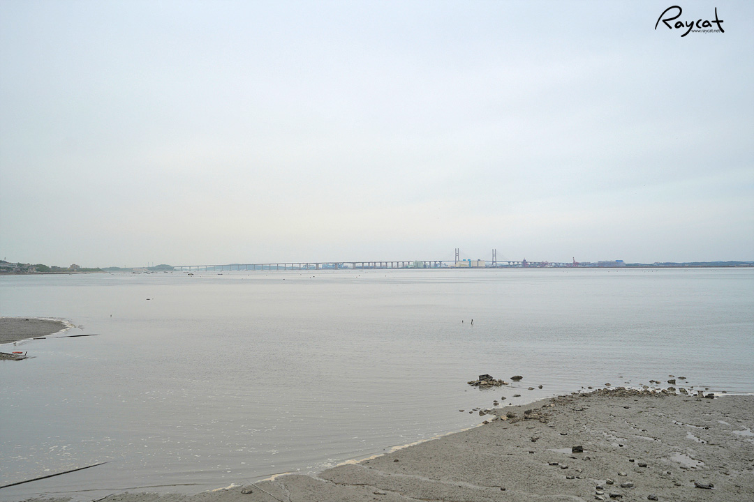 삽교호에 바라보는 서해대교 실제로 경기도 평택에서 무척 가까운 곳이기도 하며 해변이 없는 간척지의 뻘이지만 공원을 따라 포구로 이어지는 트레킹 코스와 조개구이가 유명하다.