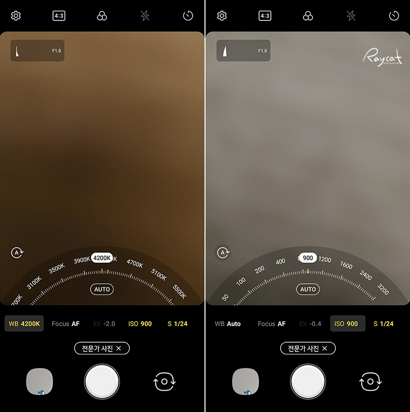 전문가 모드에서 색온도를 낮추면 차가운 느낌으로 색온도를 올리면 좀 더 따뜻한 느낌의 색감의 사진을 촬영 할 수 있으며 야경 사진을 촬영 할 때 제경우 자주 전문가 모드를 사용합니다.