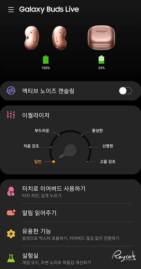 중, 저음은 풍부하게 들리며 이외의 앱에서 지원하는 이퀼라이저, 이어버드 찾기, 알림 읽어주기 기능등은 꽤 편합니다.