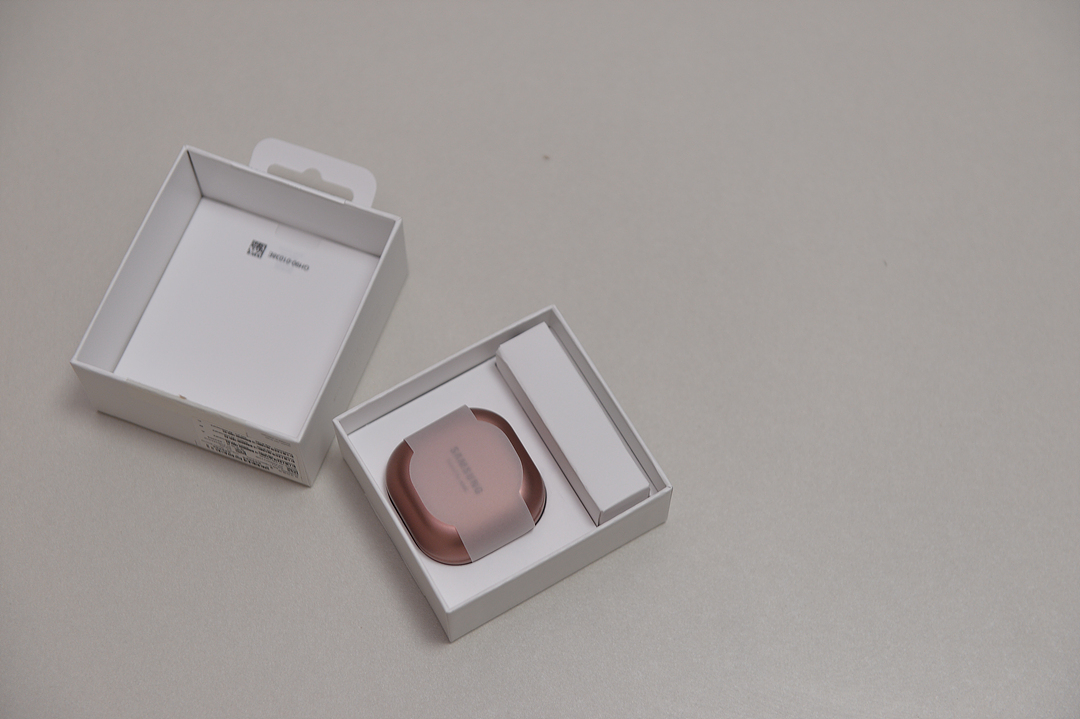 충전 크래들은 갤럭시 노트20 울트라와 같은 무광의 브론즈인데 이어버드는 유광이라 손 지문이 잘 보이는편 입니다. 개인적으로 이어버드도 무광으로 컬러를 통일 했으면 더 좋았을걸 하는 생각이 듭니다.