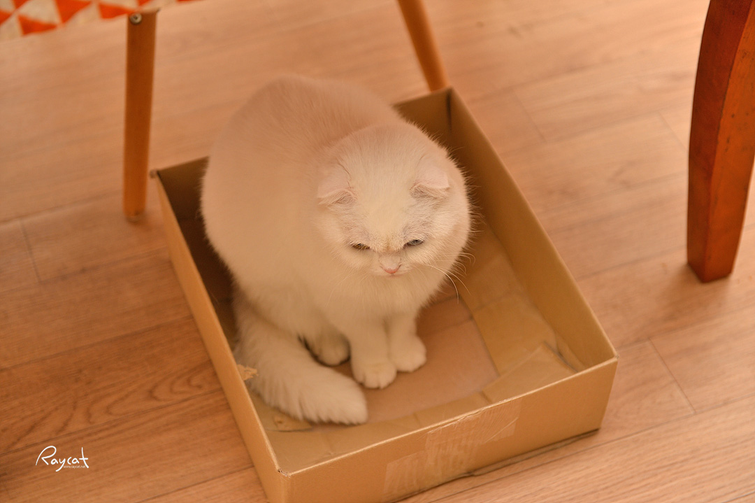 밥 먹는 동안 식탁 아래 박스에 들어가서 기다리는 고양이 ~