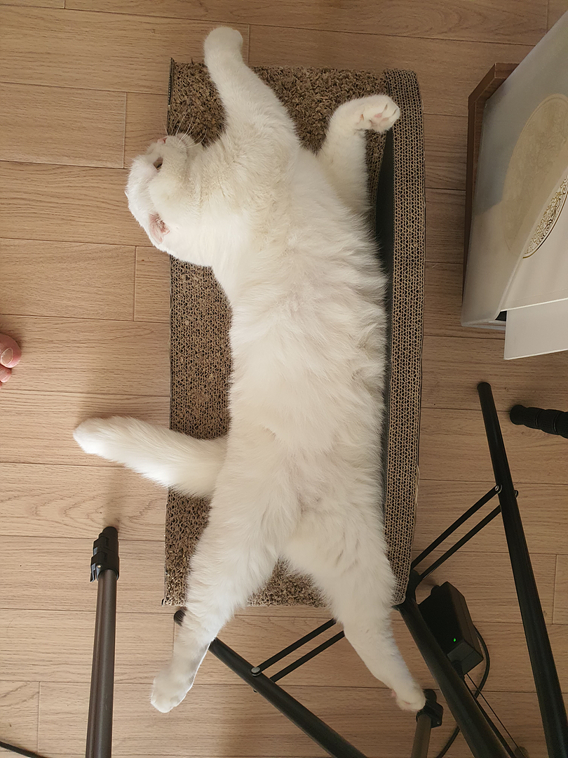 코로나 이후 집사는 밖으로 돌아다니지 못해서 삶의 질이 떨어지고 있는데 고양이는 집사가 하루 종일 집에 있으니 혼자 신나서 뛰어다니고 신이 난 느낌이다.